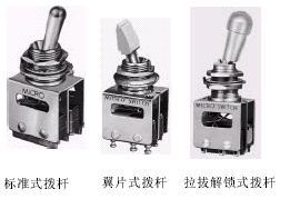 特性:*2或3-位,瞬时和保持动作*2,3或4个单刀双掷精密微动开关*标准拨杆,翼片或拉拔解锁式拨杆*银或金触点*15/32