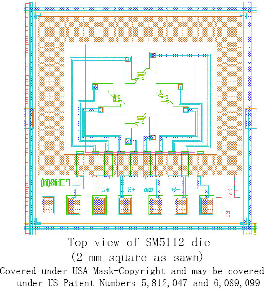 SM5112为硅微电机压阻式压力传感器芯片,该产品能在恶劣工作环境下精确测量。量程为15spi~300spi,可直接安装在陶瓷片或PC板基片上,也可根据不同用途采用特殊的封装方式。