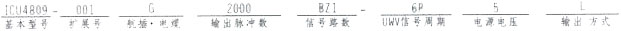 基本型号ICU4809,电缆测出G,脉冲数2000/p/r,A、B、Z三路信号,Tz=1T,电源电压DC5V,长线驱动器输出L;