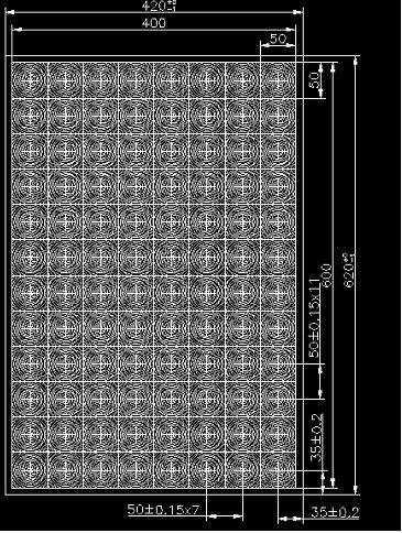 二、 单镜尺寸50*50mm,共96片组合,厚度3.2mm,F=63mm