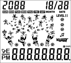 △ 电压: 3.0V 功能: 同屏显示年月日星期时分秒游戏演示 万年历 闹铃 计算器 世界时 夏令时 倒计时 足球游戏 按键: 按键定义:共28键 主模式键: TIME SET ALM