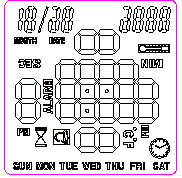 △ 电压: 3.0V 功能: 同屏显示年月日星期,动画时分秒 万年历 地图动画 八位计算器 闹铃 夏令时 世界时 按键: 按键定义: 共25键 主模式键: TIME TIMER ALM SET UP DOWN
