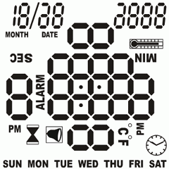 SDL8049 同屏月日时间温度,双时间,闹铃,温度计图标,英文星期 下载