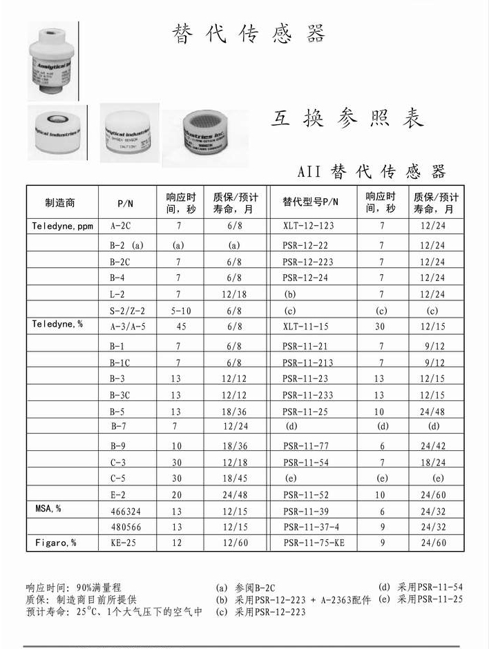 AII还设计出一系列高质量的替代传感器,用于直接替代Teledyne、MSA、Figaro 其它厂商的氧传感器。
